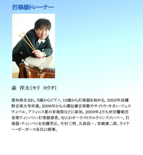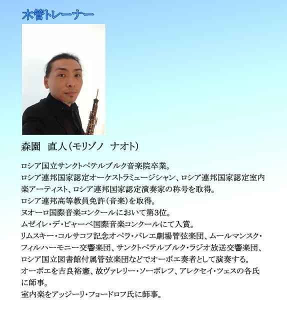 プロの演奏家をトレーナーとして積極的に招聘し、更なるレベルアップを図っています。